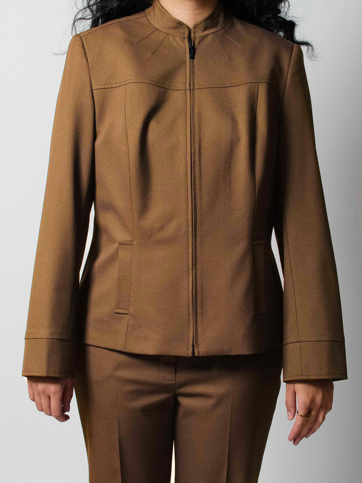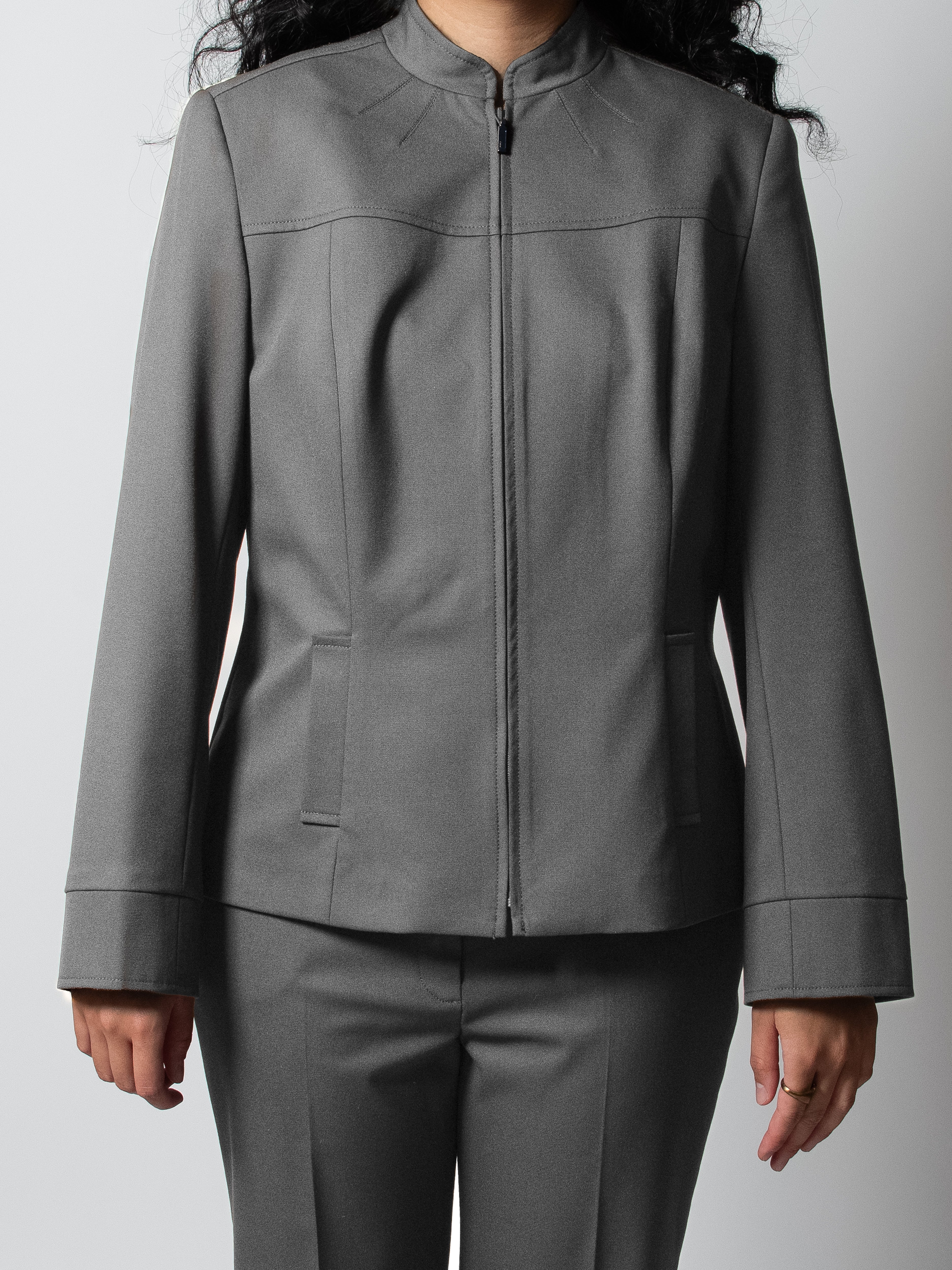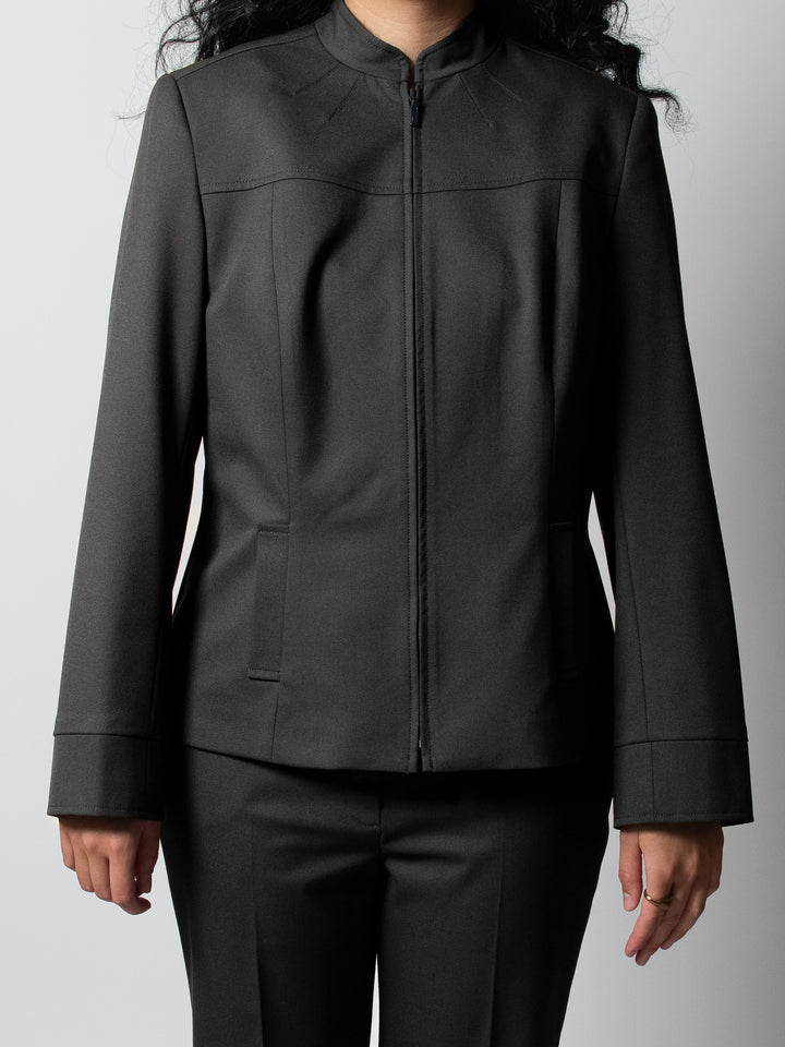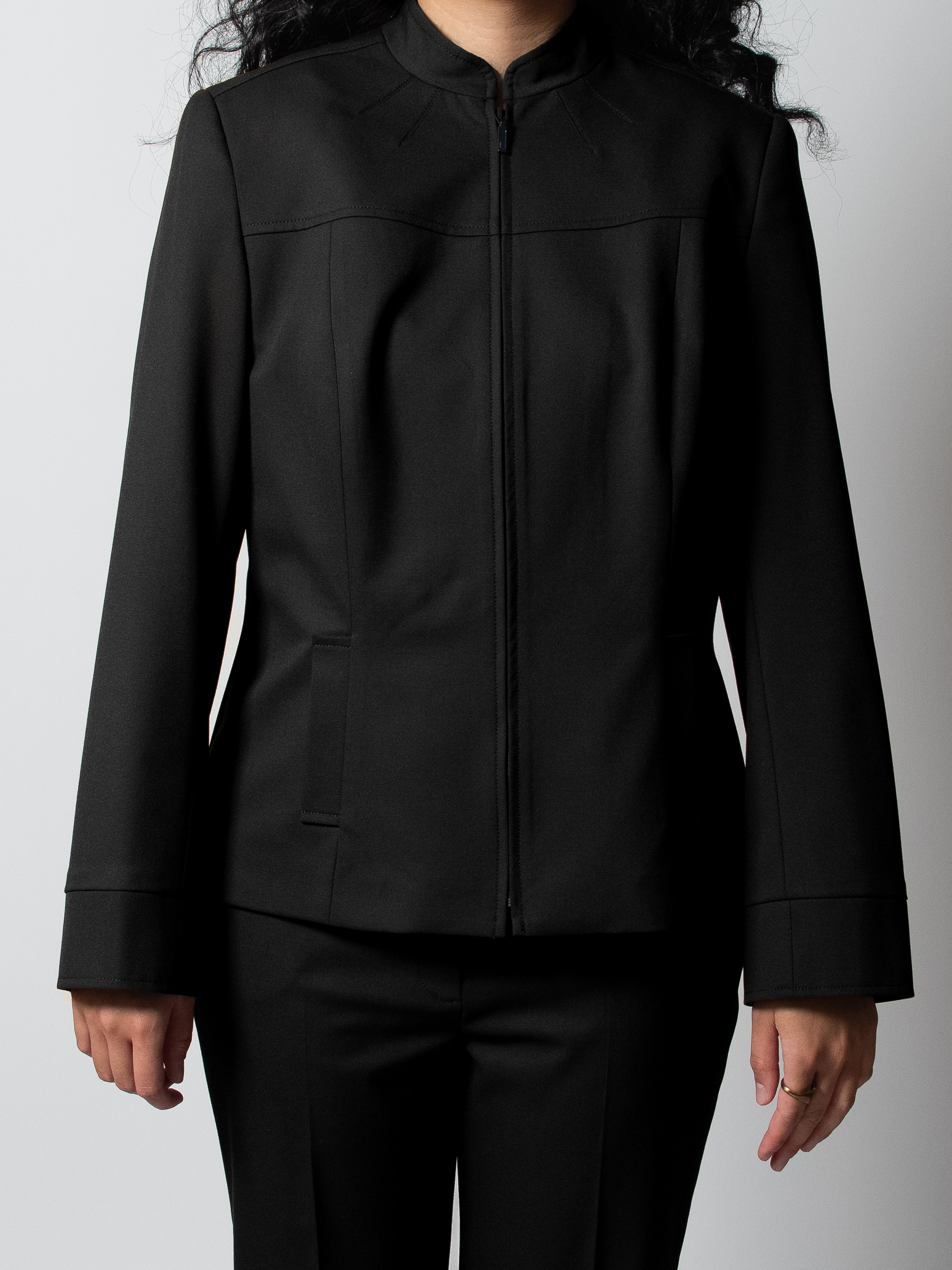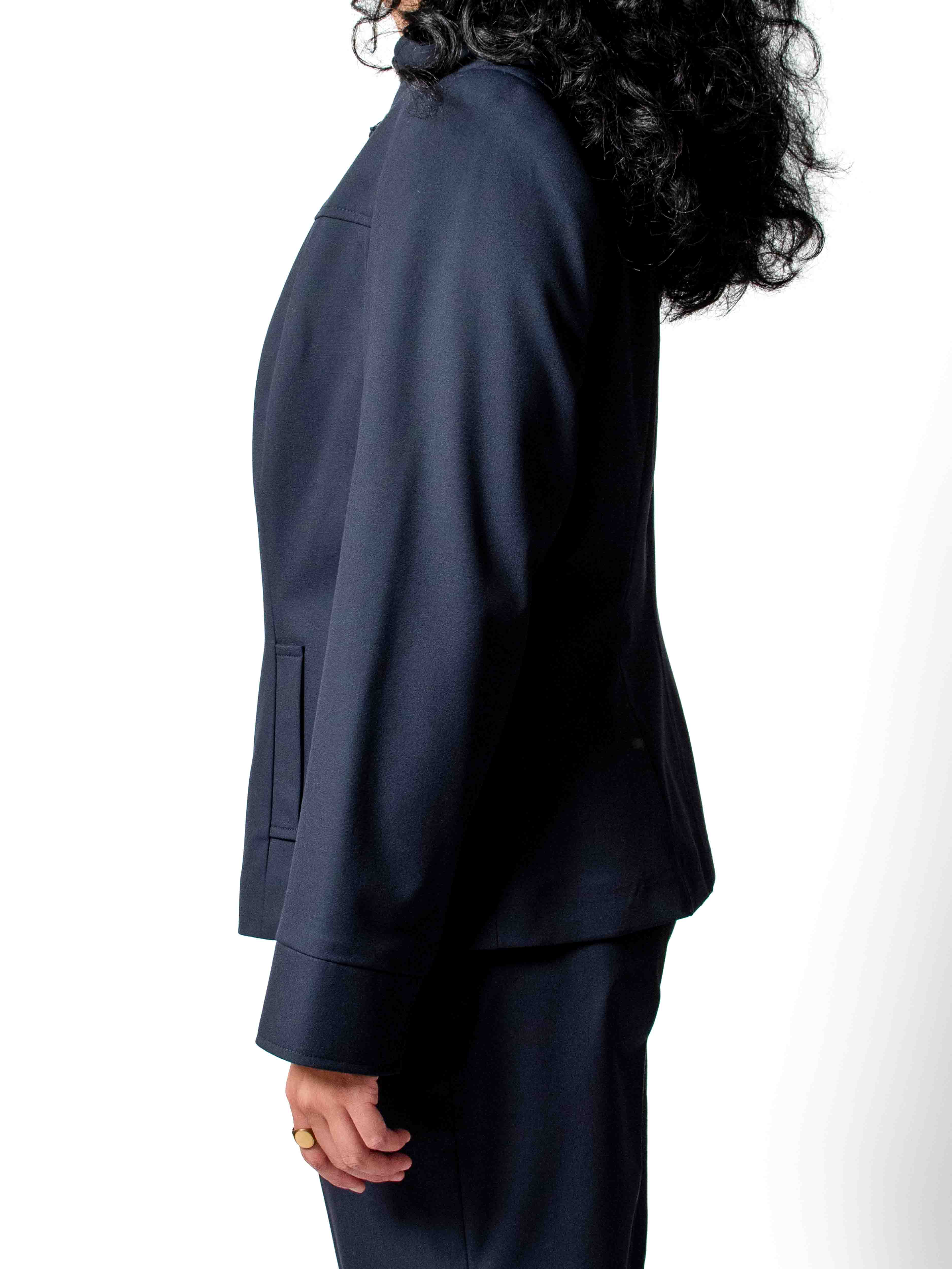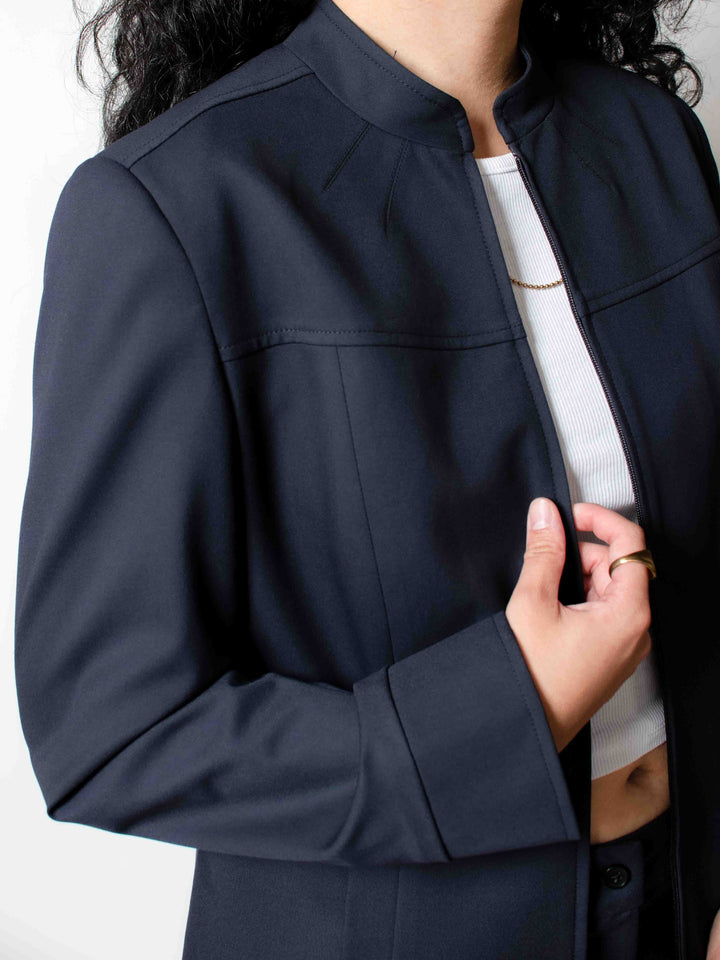 Crafted for the ambitious "city dreamer" with an edge. The Ascent Jacket redefines professional outerwear. Its sleek stand-collar and streamlined front zipper embody Ggamaki's commitment to effortless sophistication and minimalist design. This light and comfortable jacket offers a sharp yet versatile silhouette, ensuring confidence for every occasion. Seamlessly integrate it into your dressing system. Explore custom fit options for your perfect foundation.