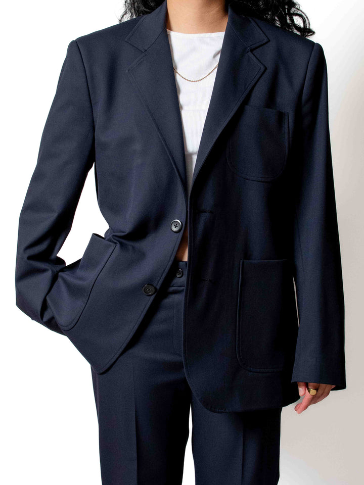 Redefine your professional wardrobe with The Compass Blazer. This essential piece blends classic tailoring with elevated functionality, creating effortless sophistication. Its classic notched lapel and spacious patch pockets offer a tailored yet light and comfortable fit. Crafted for the "city dreamer," it ensures confidence and poise in every setting. Seamlessly integrate it into your dressing system. Explore custom fit options for your perfect foundation.