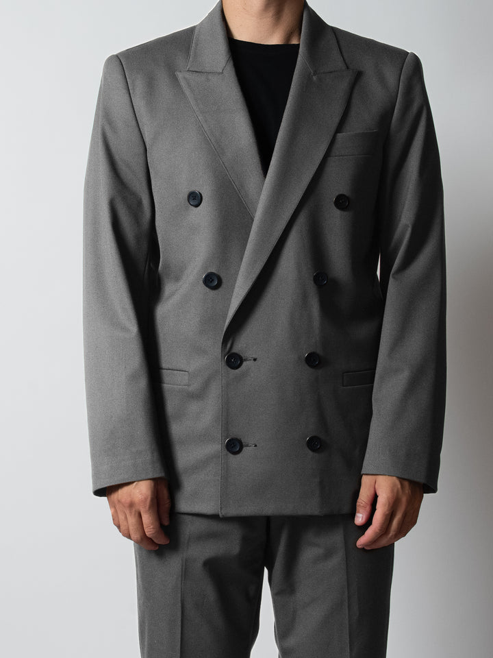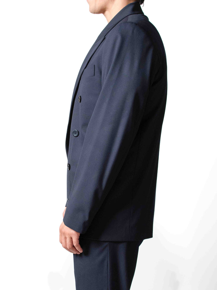 Double-breasted six-button closure with tonal buttons for a clean finish